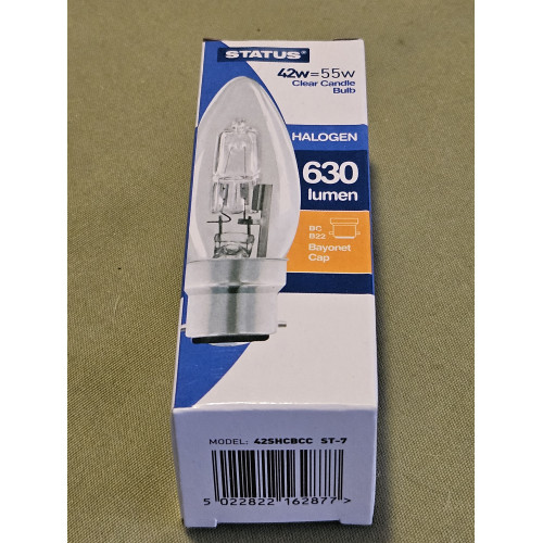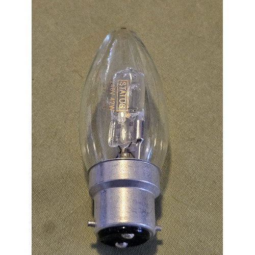 Status 42w (55w equivalent) Halogen Clear Candle Energy Saver light bulbs BC Standard Bayonet